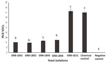- Oro, L., Feliziani, E., Ciani, M., Romanazzi, G., & Comitini, F. (2018). Volatile organic compounds from Wickerhamomyces anomalus, Metschnikowia pulcherrima and Saccharomyces cerevisiae inhibit growth of decay causing fungi and control postharvest diseases of strawberries. International Journal of Food Microbiology, 265, 18–22. https://doi.org/10.1016/j.ijfoodmicro.2017.10.027